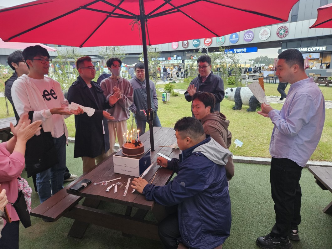 홍성으로 복귀할때 휴게소 들려서 생일파티도 하였습니다.