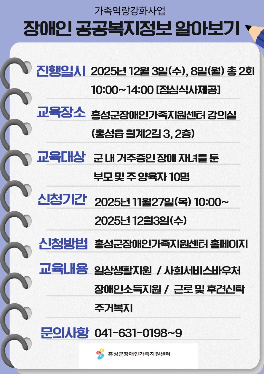 마. 문 의: 홍성군장애인가족지원센터 ☎041-631-0198~9