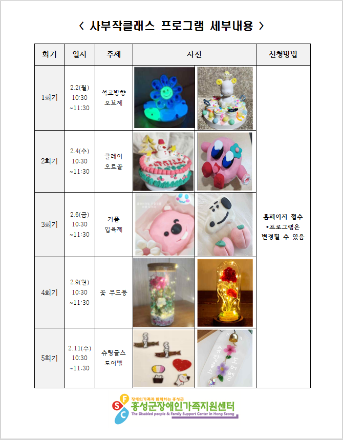 7. 문의 : 홍성군장애인가족지원센터 T. 041-631-0198~9