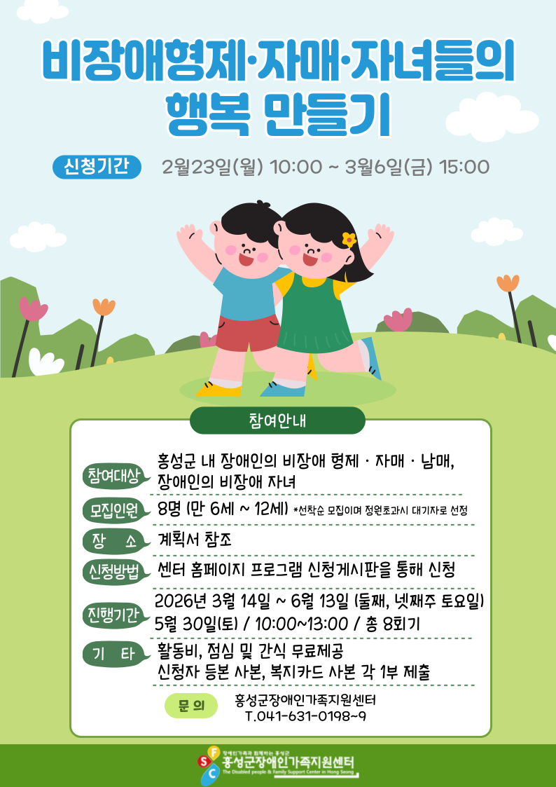 7. 문의 : 홍성군장애인가족지원센터 T. 041-631-0198~9