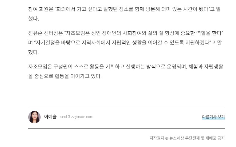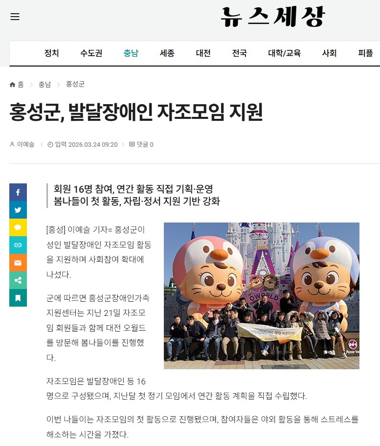 센터뉴스 홍성군, 발달장애인 자조모임 지원 보도자료