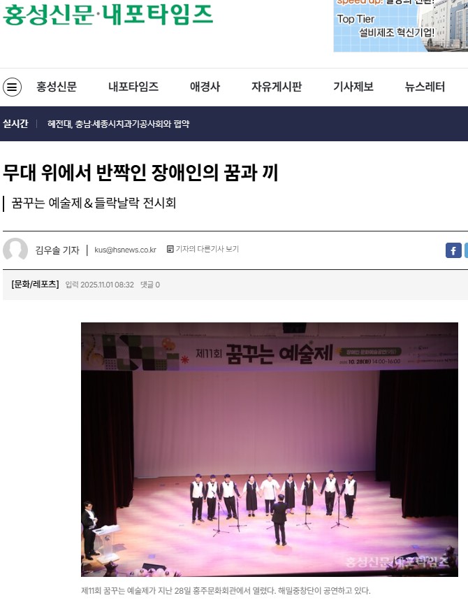 - 이전글홍성군장애인가족지원센터 ‘제11회 꿈꾸는 예술제’, ‘제6회 들락날락 전시회’ 성료 25.11.06